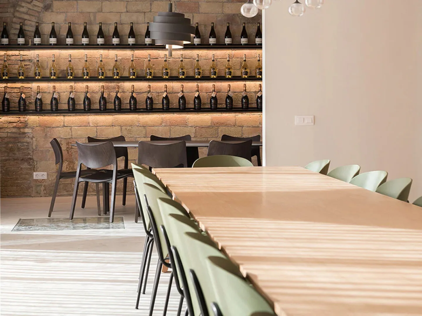 Oriol Rossell, a family-run winery south of Barcelona, features new tasting rooms designed by Esteve Interiorisme, furnished with STUA’s Globus and Laclasica chairs.