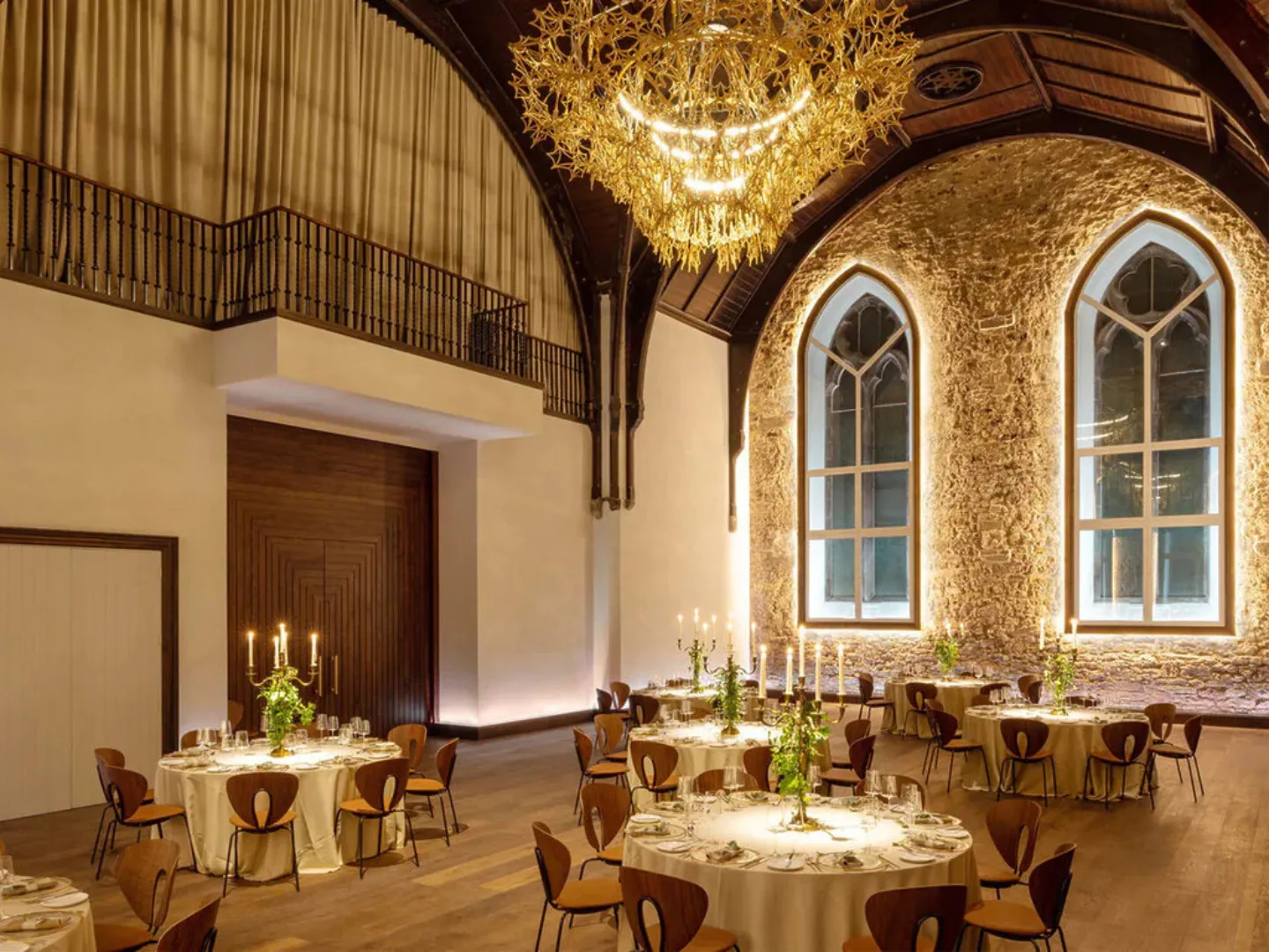 Virgin Hotel is a stunning boutique, 5* hotel in Edinburgh’s Old Town. In collaboration with Joelle Reid Interiors, Tangram were thrilled to be involved in the interiors of the gorgeous events space, Greyfriars Hall. The space features Globus chairs from STUA finished in a black frame, walnut backrest and seat upholstered in a warm cognac leather.