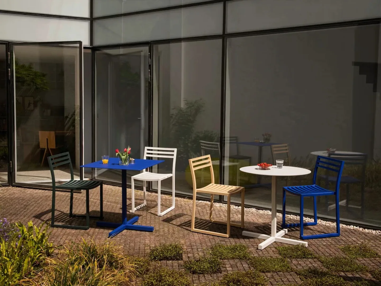 For a more industrial or high-end contemporary look, stainless steel is a strong and stylish choice. Unlike lightweight metals, stainless steel offers excellent stability, even in windy conditions. Hem’s Chop collection is a wonderful example of how stainless steel can be used to create sleek, durable furniture with a refined aesthetic. Chop combines precision engineering with minimalist design, making it a perfect fit for modern interiors and outdoor spaces alike. Its clean lines and robust construction highlight the strength and elegance of stainless steel, ensuring both style and longevity.