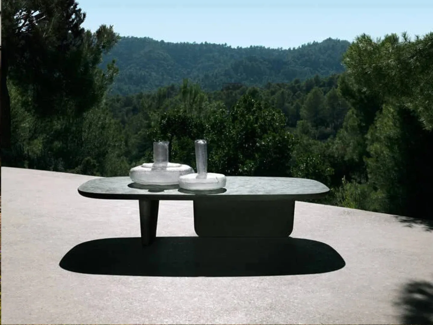 The Tobi-Ishi Outdoor dining and coffee table is an extension of the iconic Zen-inspired indoor table collection from B&B Italia. The name references polished stones used ornamentally in traditional Japanese gardens. A stunning sculptural piece designed to make a statement, Tobi-Ishi Outdoor is made of cement in four different colours including anthracite, brick, grey and green cement.