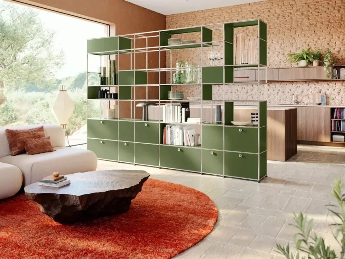 Chrome and stainless steel are experiencing a comeback, bringing sleek modernity and a sense of polish to interiors. This trend aligns beautifully with the much loved USM modular furniture systems, where clean lines and chrome take centre stage. Whether it’s a home office or a boutique retail space, the reflective quality of chrome enhances light and effortlessly instils chic sophistication. Its timeless appeal makes it a versatile choice, seamlessly complementing both contemporary and classic interiors.