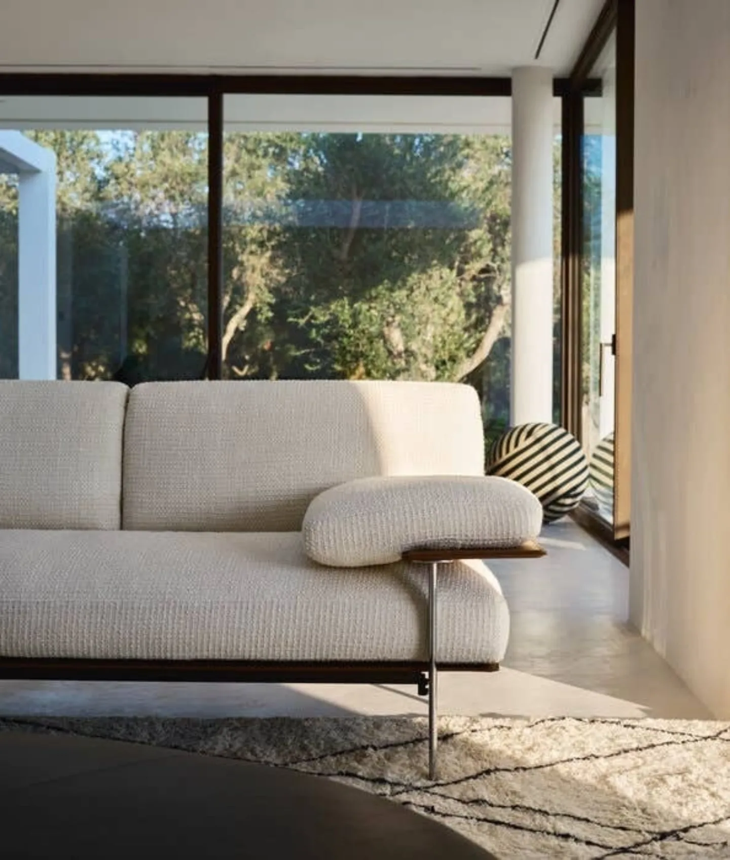 While steel is often associated with a cold, industrial aesthetic, when paired with the right materials, it takes on an entirely different character—one of warmth and sophistication. The Diesis sofa from B&B Italia is a perfect example. A true design icon, its die-cast aluminium and steel support frame provides a striking contrast to the inviting, plush upholstery. Beautiful from every angle, its structure and softness achieves both comfort and elegance.