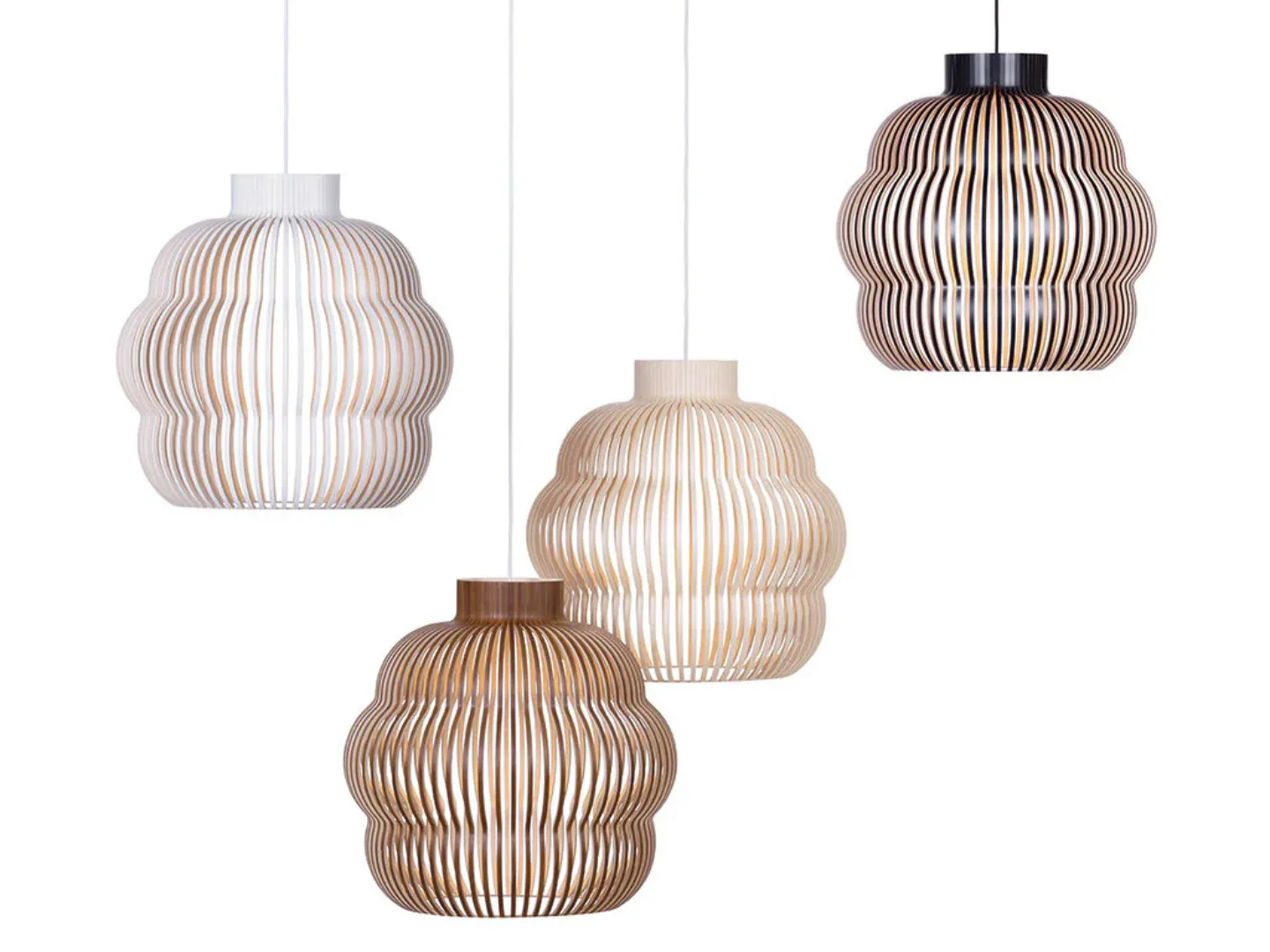 Like floating clouds, Kumulo is intriguing in its form. “Kumulo can easily become the focal point of a room. It provides warm, soft light that reflects the shades of the birch.” The designer, Seppo Kohmo envisions the Kumulo pendant lamp within lobbies and restaurants as well as private spaces.