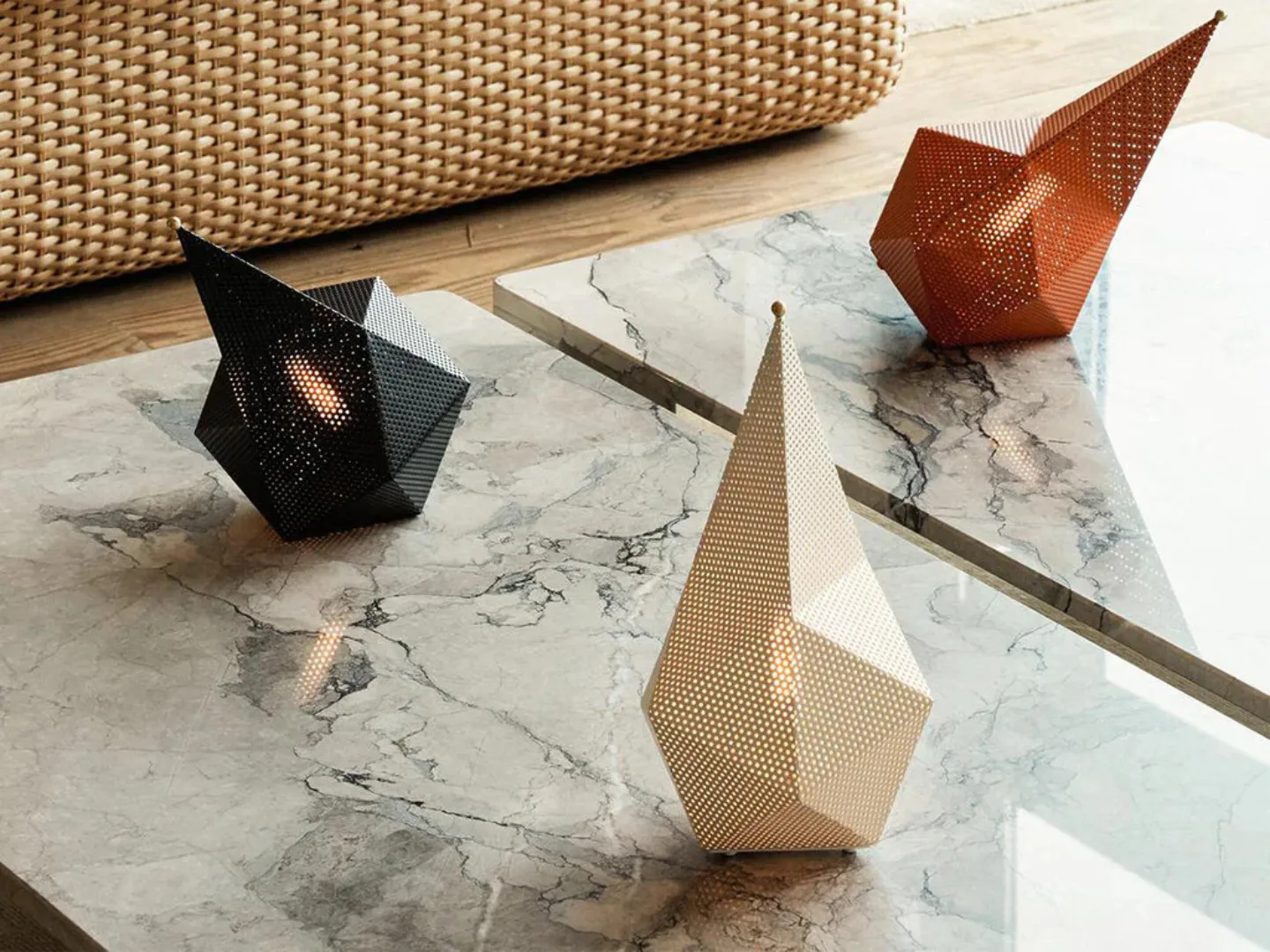 Bagdad by Mathieu Matégot is Gubi’s latest portable light. Available in three colours, Bagdad can rest at various angles thanks to its unusual shape. Our favourite detail was the golden sphere that sits on the tip of the light, this also acts as the on/off/dimmer control. We feel these would look particularly beautiful in an intimate restaurant to create ambiance and cosiness.