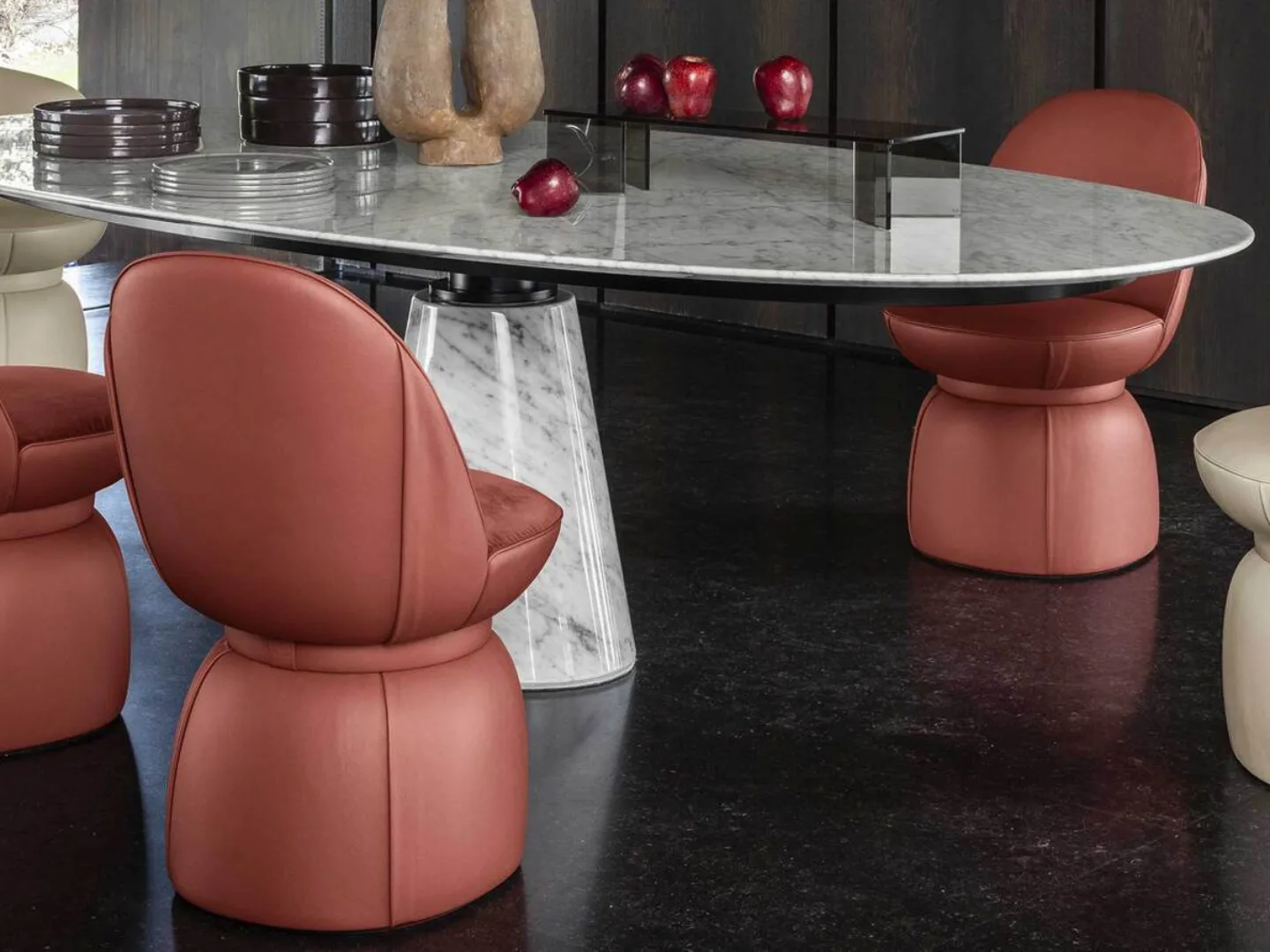 Continuing the chair theme, Poltrona Frau’s Lepli stood out to us for its unique shape and form. Compact with a swivel base we think this would work remarkably well in boutique hotel bedrooms.