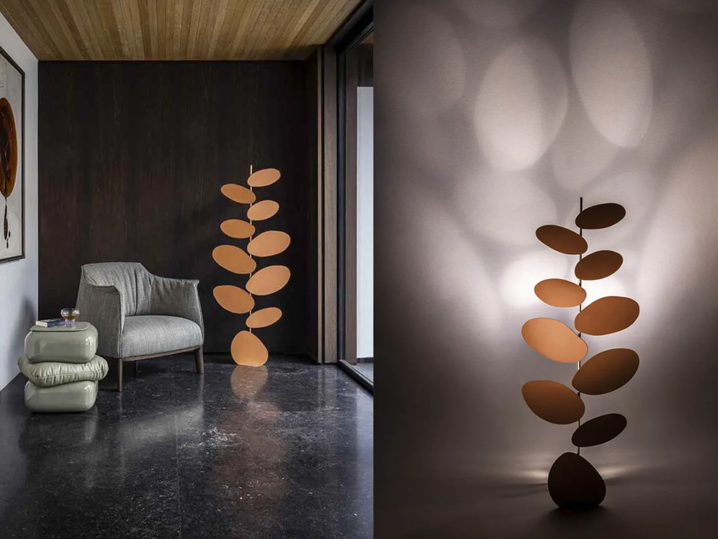 Also new from Poltrona Frau were these unusual floor lights reminiscent of leafy trees. Each individual leaf was finished in Poltrona Frau’s signature leather and allowed for beautiful shadows to be cast on surrounding walls.