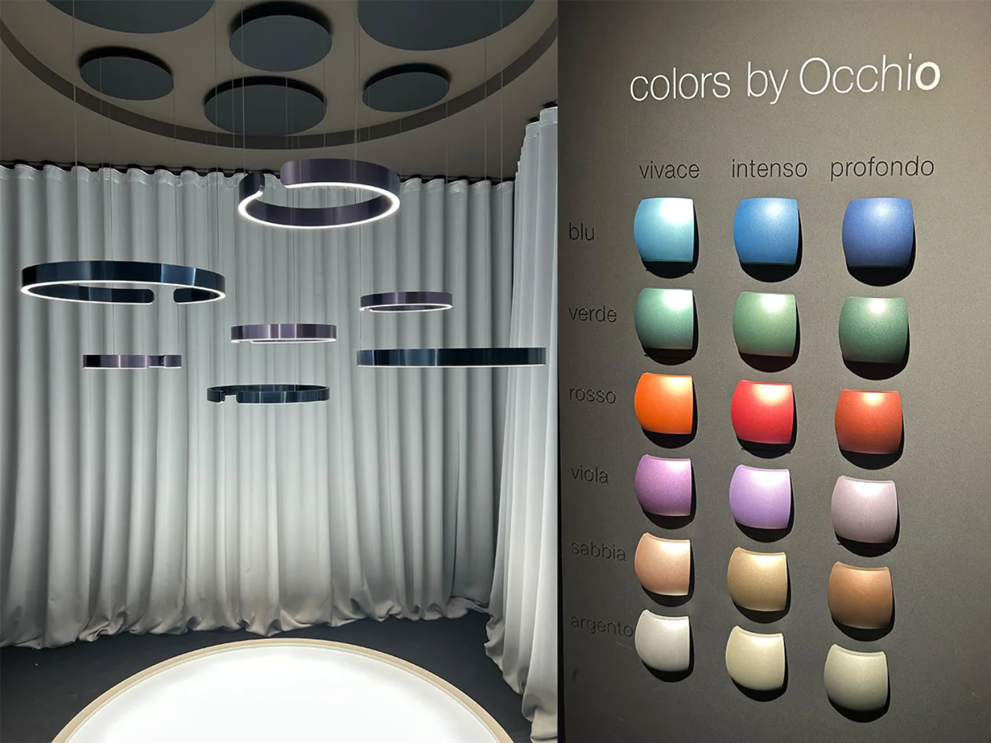 The Occhio space was as impressive as you’d imagine for this award-winning lighting company. Eighteen new colours were presented as a way of injecting more personality into lighting design. The popular Mito range showcased some of these colours beautifully and reminded us just how clever these systems can be.