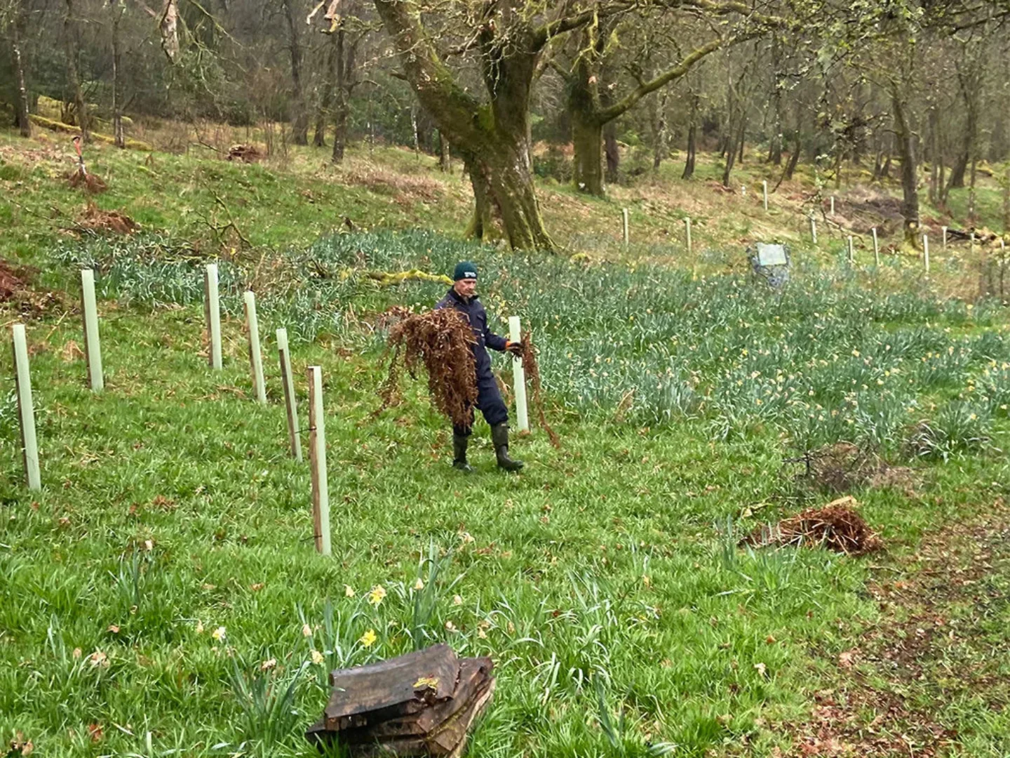 The weather wasn’t exactly what we had hoped for, however it didn’t stop us getting stuck into clearing dead bracken to make way for Bluebells to spring into life and add glorious colour. Other tasks included cleaning leather sofas, stone sorting (which turned out to be most therapeutic) and general tidying.